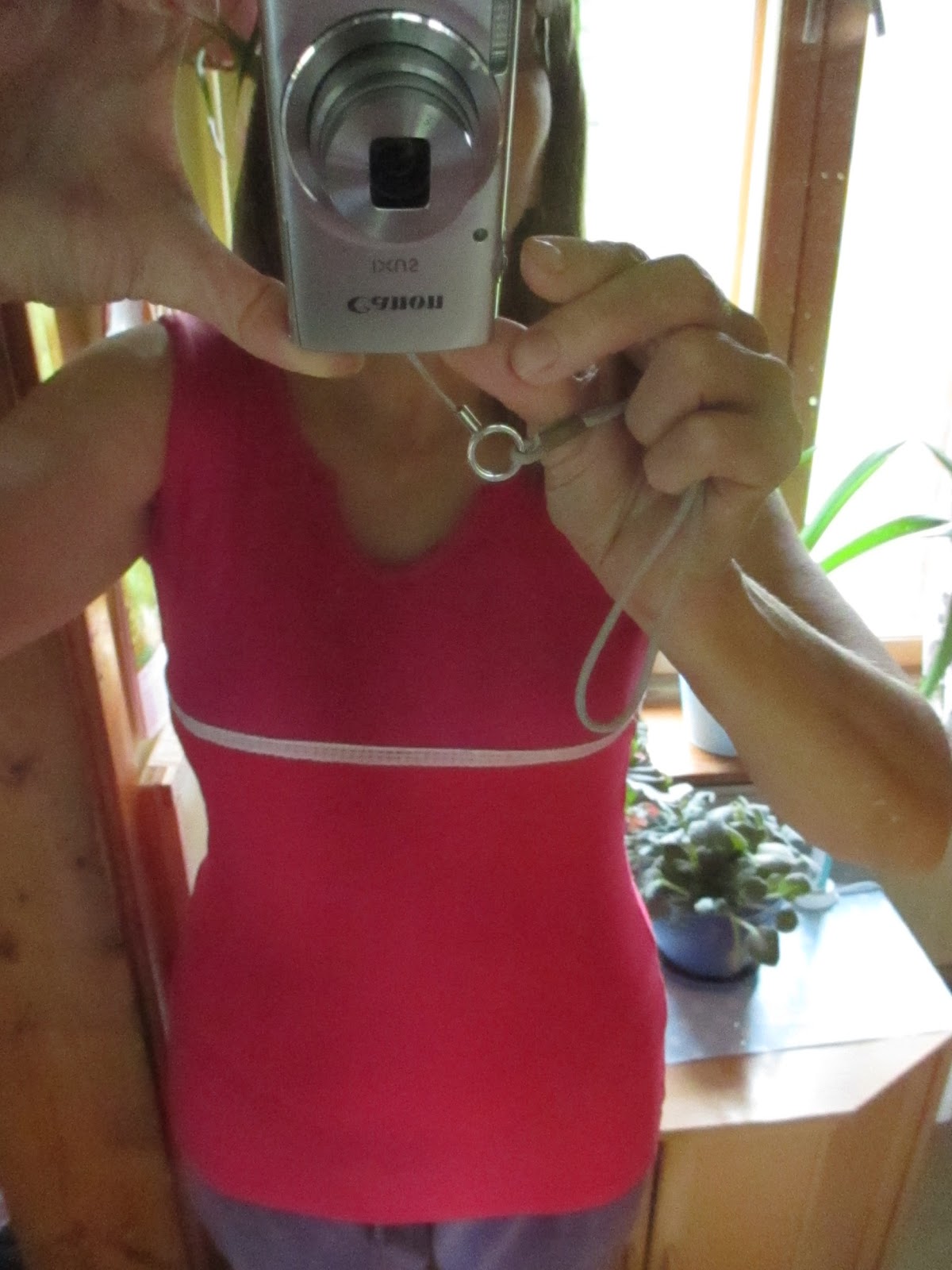 Liekö eilinen kirja "Kuinka villapaita paloitellaan" vaikuttanut, kun meni taas tutkimaan lumppulaatikkoani. Siellä oli pari punaista trikoopaitaa. Toinen pinkihtävä, alunperin pitkähihainen paita, jonka joskus olin napannut mukaani varmaan kirppiksen ilmaiskorista, vain huomatakseni että sen helmaosassa oli vaaleampia laikkuja. Hihat olin jo aiemmin leikannut pois, ties mistä syystä... Toinen oli kirkkaamman punainen toppi, jossa taas yläosa oli vähän kulahtanut. Voisiko ne jotenkin yhdistää, mietin.